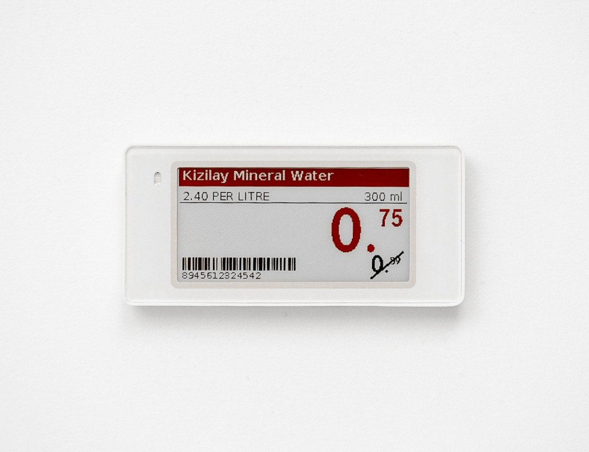 Its 250 × 128 resolution provides clear and easy-to-read product information, while the compact and lightweight design (72.31 × 34.31 × 9.1 mm, 29.3 g) fits perfectly on any display. Available in Black, White and Red, and powered by 2 CR2450 batteries, this ESL combines durability, style, and practicality for effective retail management.